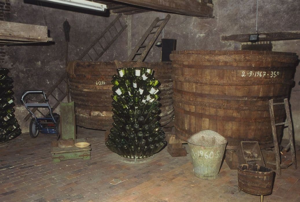 Pressoir à balancier construit en briques en chaînage harpé et rognons de silex. Il conserve quelques éléments du 14e siècle bien que reconstruit en grande partie au 18e siècle. Vers 1789, le pressoir a été déplacé et remonté dans la cuverie actuelle spécialement construite pour le recevoir.
