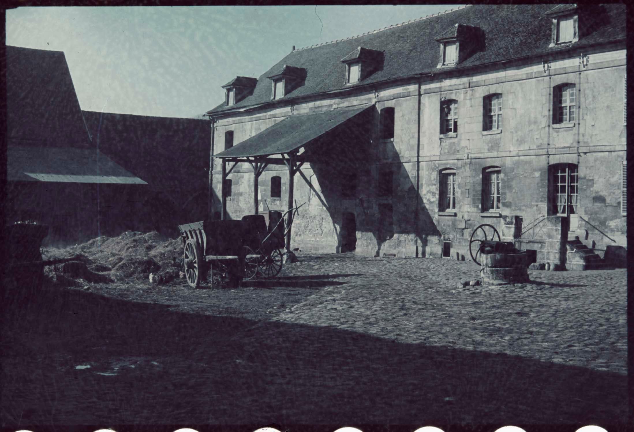 Ferme constituée de corps de bâtiments répartis autour d'une cour rectangulaire. Corps de logis en pierre remontant sans doute au 18e siècle. Un pigeonnier-porche sert d'accès à la vaste grange à céréales.