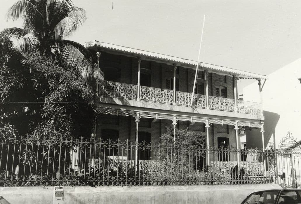 La chambre d'agriculture de Pointe-à-Pitre fut détruite par l'incendie du 18 juillet 1871. Afin de répondre aux prescriptions établies par la municipalité en terme de reconstruction, le président de la Chambre d'agriculture proposa un projet de construction en fer et en briques élaboré par l'ingénieur Suffit. Le projet fut adopté en 1871. En janvier 1872, la Chambre acheta un terrain vendu par les héritiers L'Herminier. Le bâtiment devait également abriter une bibliothèque et les collections botaniques et zoologiques du docteur Ferdinand L'Herminier. Le bâtiment construit en 1873 comprenait un rez-de-chaussée surélevé servant de salle de délibération. Il était précédé d'une galerie rythmée de colonnettes en fonte. Le toit était couvert en tuiles et l'arrête surmontée d'une galerie de faîtage en zinc. Une marquise en zinc courrait également le long de l'auvent protégeant la galerie. Dans les années 1930, ce bâtiment fut surélevé. Pour accéder à l'étage, un escalier demi hors-oeuvre fut édifié contre la façade postérieure du bâtiment et enserré dans une tour d'escalier gagnée sur la cour. La galerie de l'étage est formée de colonnettes en fonte, différentes de celles du rez-de-chaussée. Le portail est décoré de rinceaux en fer forgé. Les dépendances sont constituées de deux bâtiments distincts.