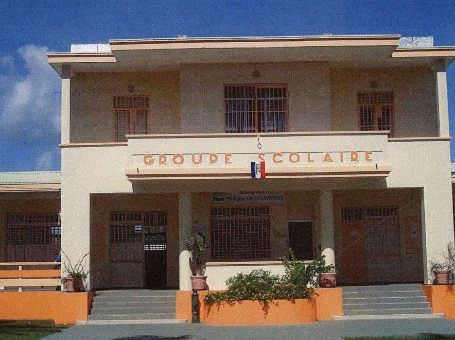 Ce groupe scolaire, conçu par l'architecte Ali Tur, fait partie de l'ensemble urbain administratif de Lamentin. Il rompt avec l'architecture traditionnelle créole et compte parmi les premiers bâtiments construits en béton armé, en Guadeloupe, dans le style Art Déco. Le bâtiment est de forme simple, selon un plan en U, et comprend un soubassement. La partie centrale, à deux niveaux, est la plus remarquable. Ali Tur y décline ses principes architecturaux : emmarchements soignés, poteaux ronds, garde-corps plein à l'étage sur lequel l'inscription « Groupe scolaire » est appliquée en lettres de béton. La parcelle est fermée par une clôture formée de poteaux carrés assez rapprochés et surmontés d'une boule enchâssée dans une croix horizontale au sommet du poteau.