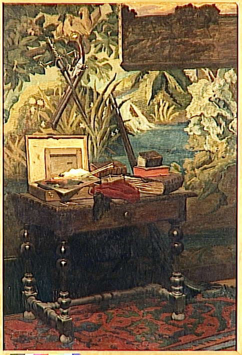 représentation d'objet (objet : art de la peinture, peinture, livre, table, arme) ; atelier d'artiste
