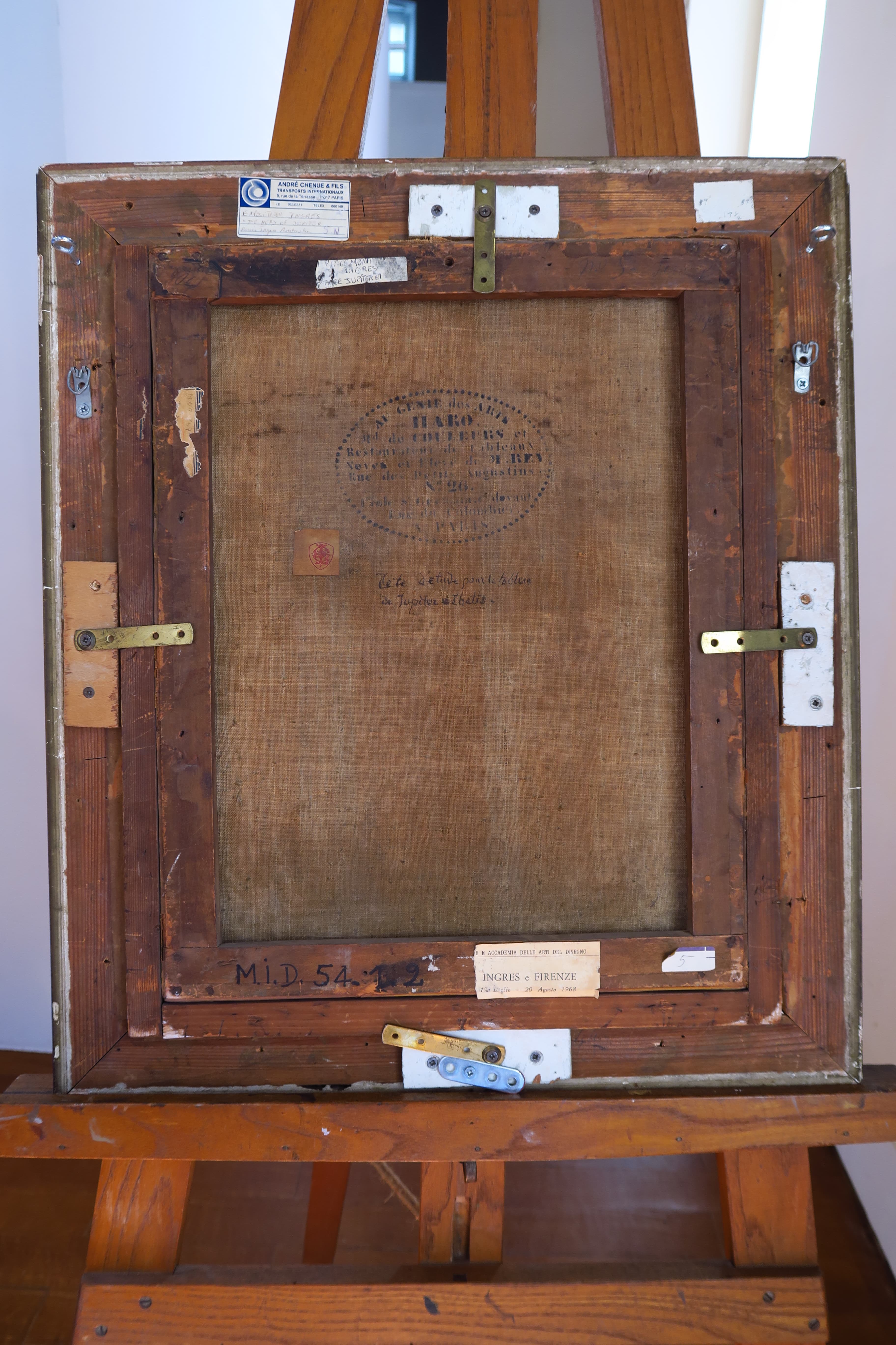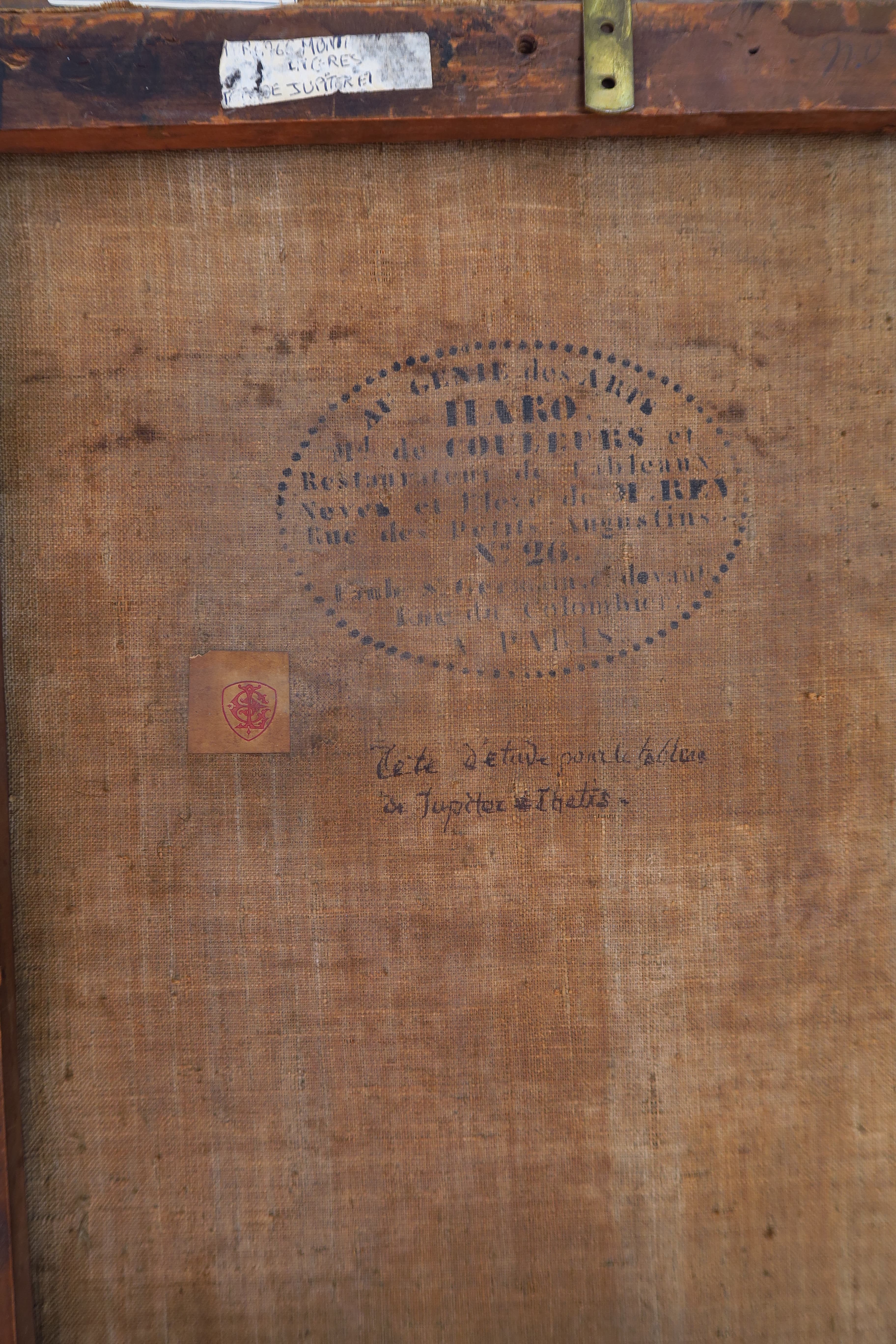 Étude pour le tableau, Jupiter et Thétis, du musée Granet à Aix-en-Provence. Cette toile, qui date donc réellement de 1810, a été retouchée en 1850 et à nouveau quand elle est signée par Ingres en 1866, d'après le catalogue de la vente Lecomte.