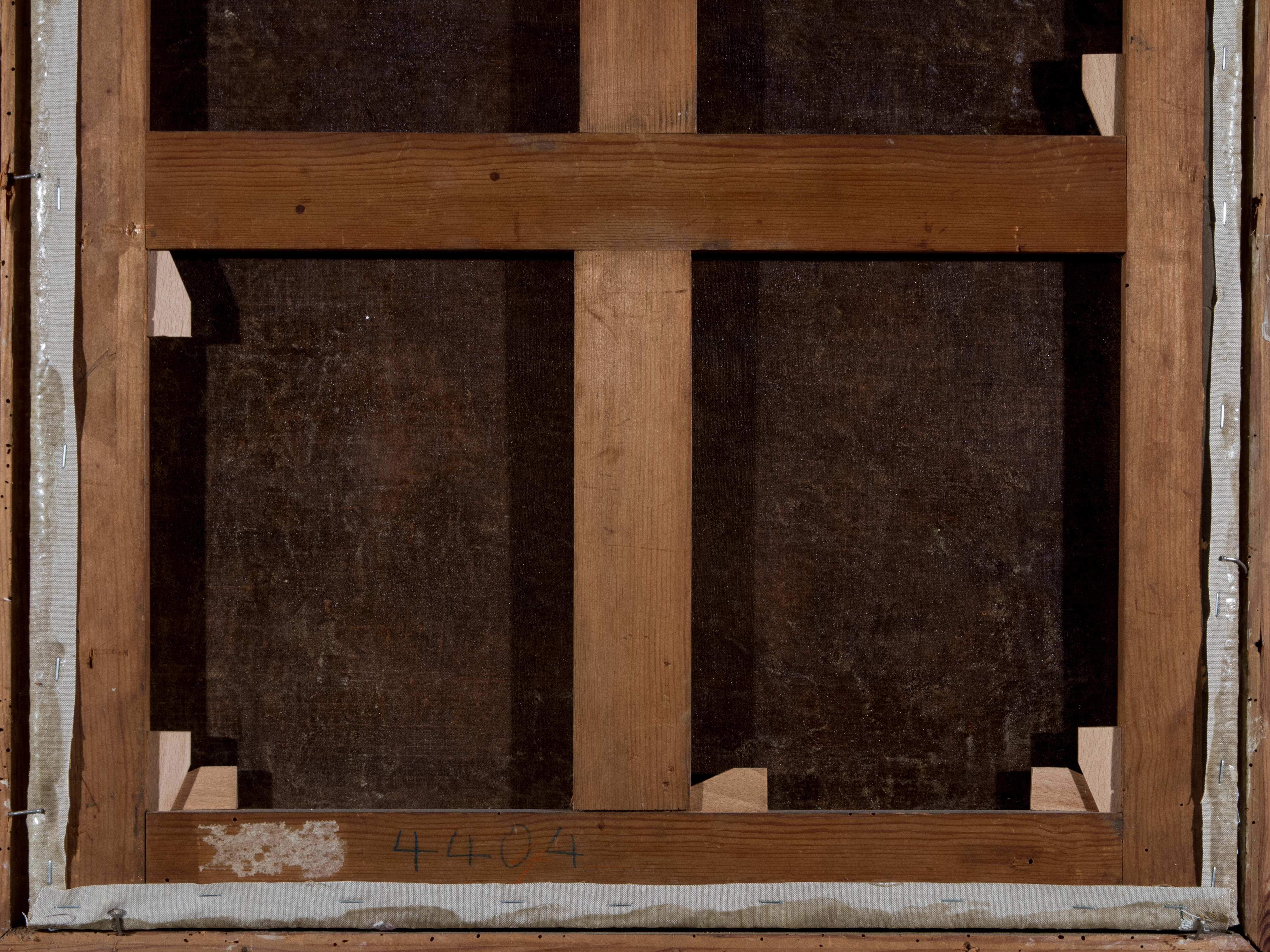 -Montant inférieur : Au crayon bleu "4404" ; au crayon rouge "4..." ; trace d'étiquette rectangulaire dentelée (Linz ?).