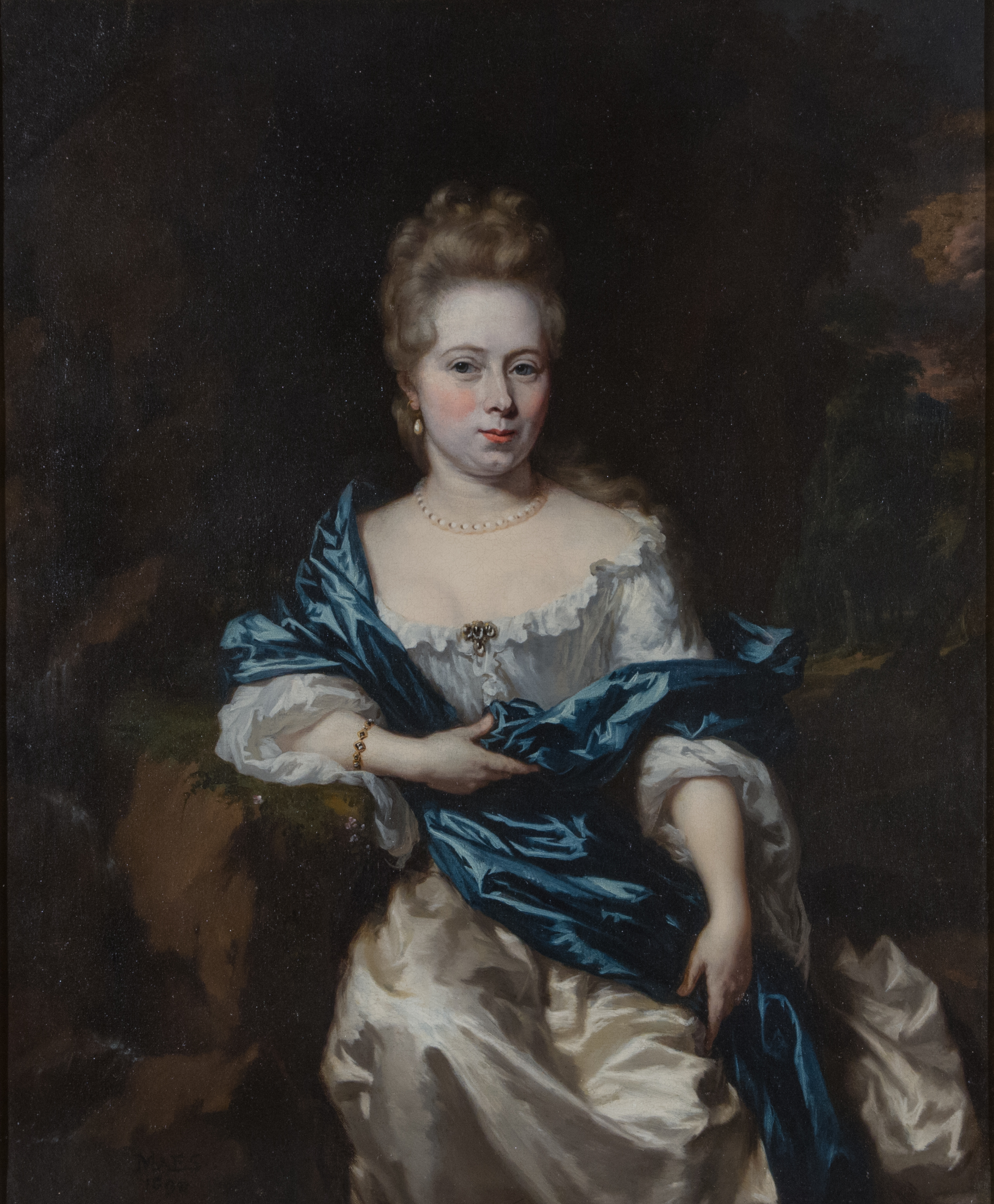 portrait d'inconnu (femme : assis, de face, robe, soierie, bijou, coiffure)