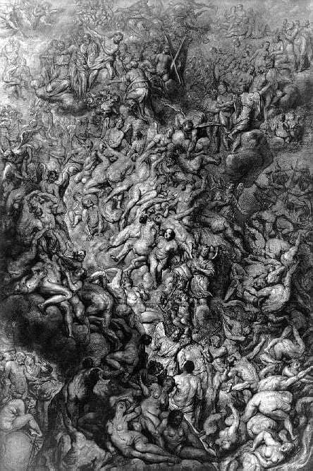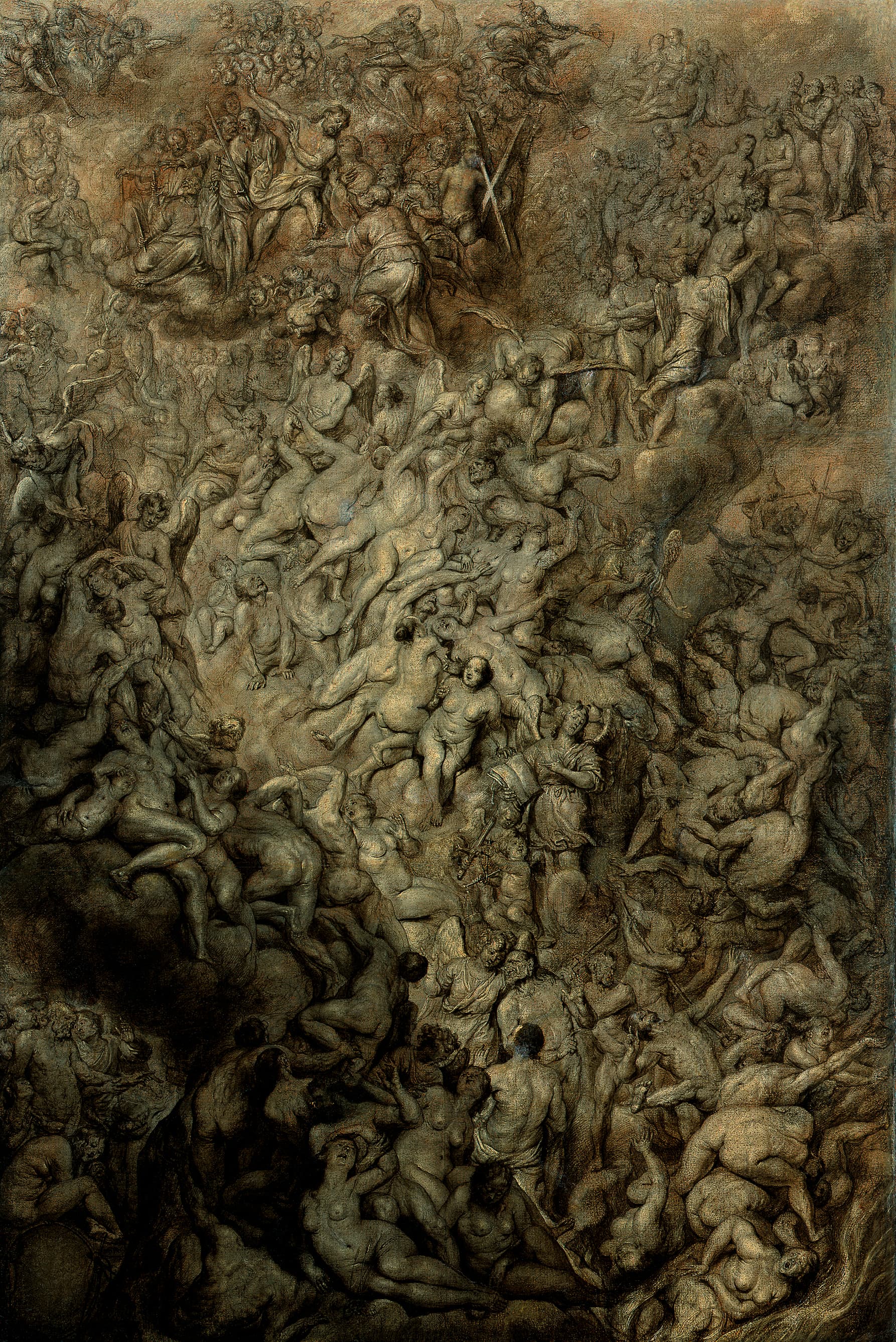 scène biblique (Jugement dernier, chute, foule, damné, nu, ange)