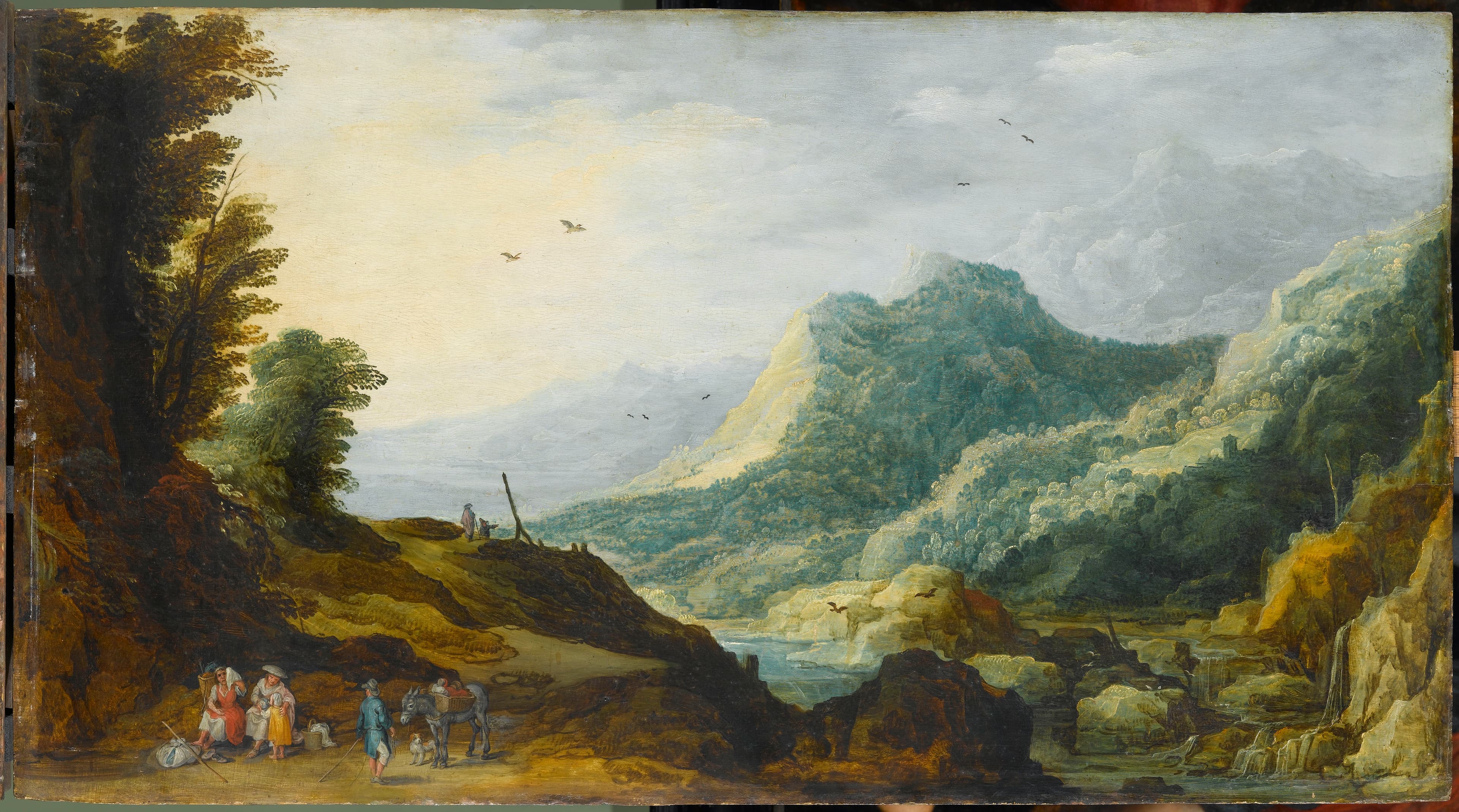 POP | Plateforme ouverte du patrimoinePaysage montagneux avec famille de paysans se reposant au bord d'un chemin