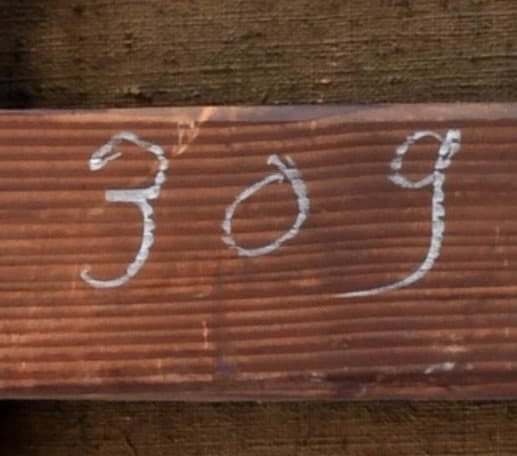 -Montant droit : A la craie bleue, inscription illisible ; à la craie blanche « 309 ».