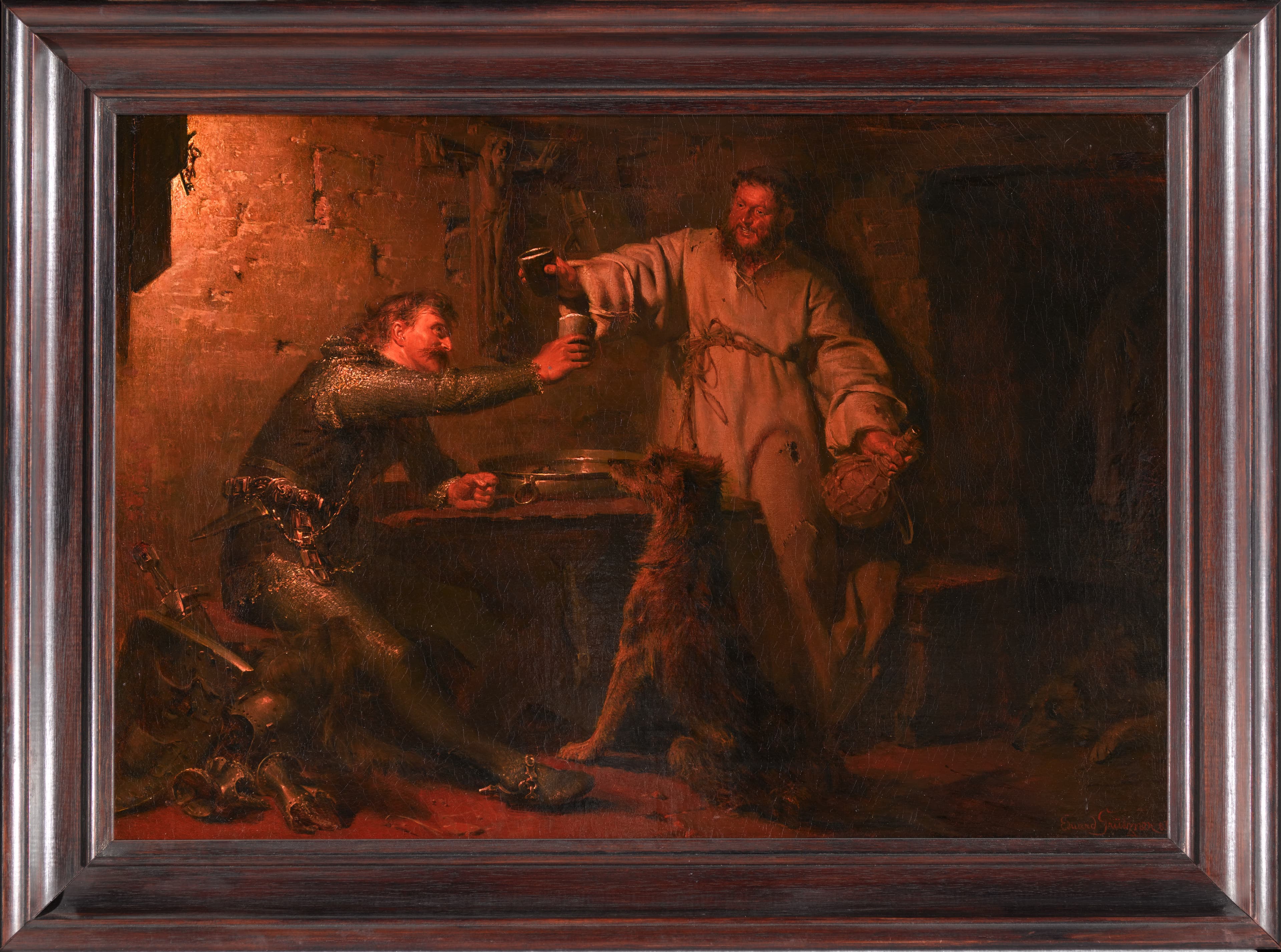 Esquisse passée en vente chez Lempertz ; catalogue : E. von Grützner. Toile. 22 x 27 cm. Vente Lempertz, Cologne, 17 mai 2014, n° 1586.