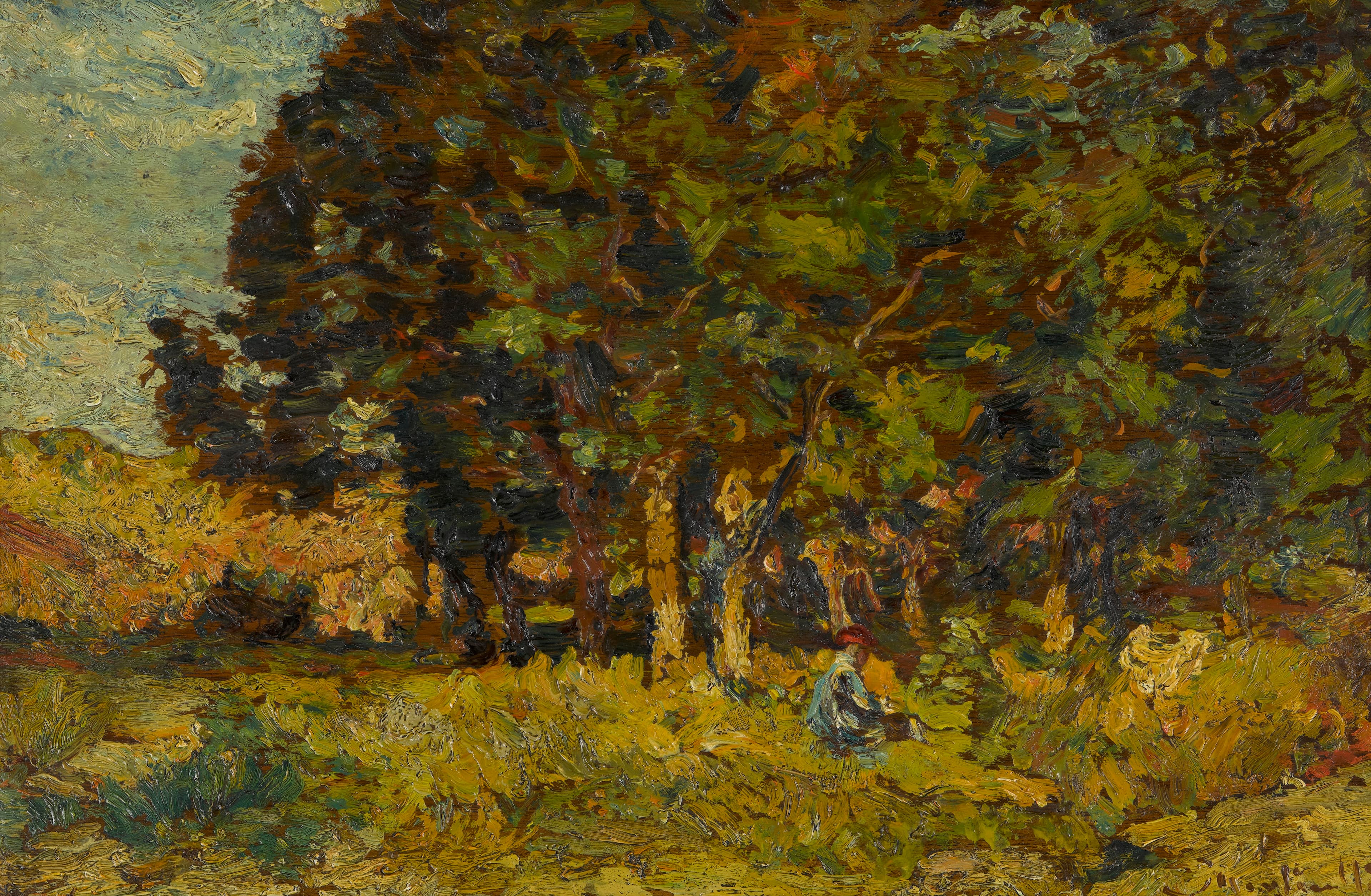 paysage (forêt, chêne, arbuste, personnage)