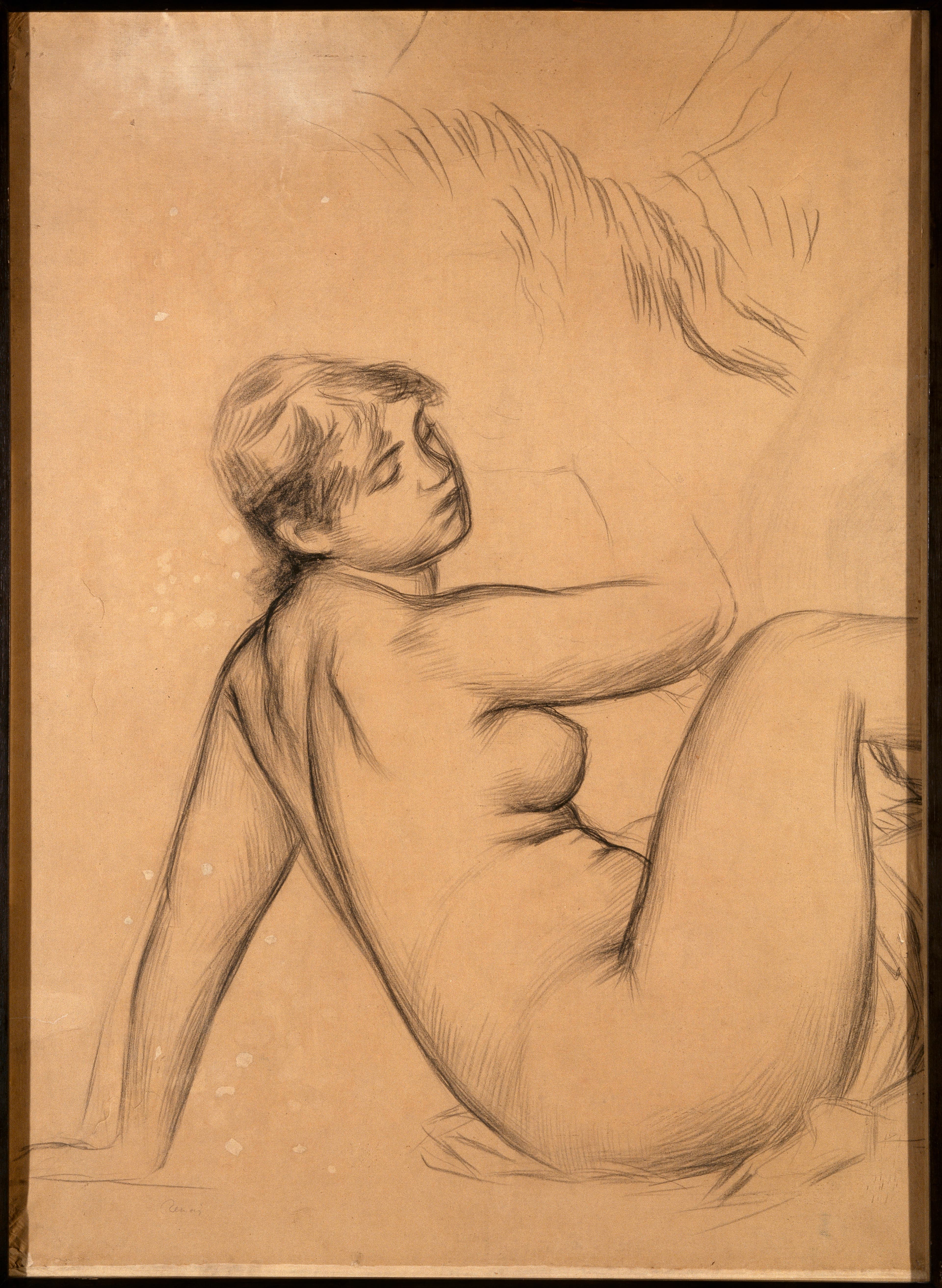 La pose de cette baigneuse qui nécessita de nombreux projets est celle qui sera définitivement adoptée dans le grand dessin de la collection Laroche et dans la composition finale (actuellement dans la collection Carroll Styson à Philadelphie) ; voir REWALD, J., "Renoir Drawings", 1946, n° 32 à 40.