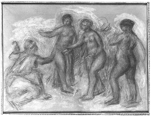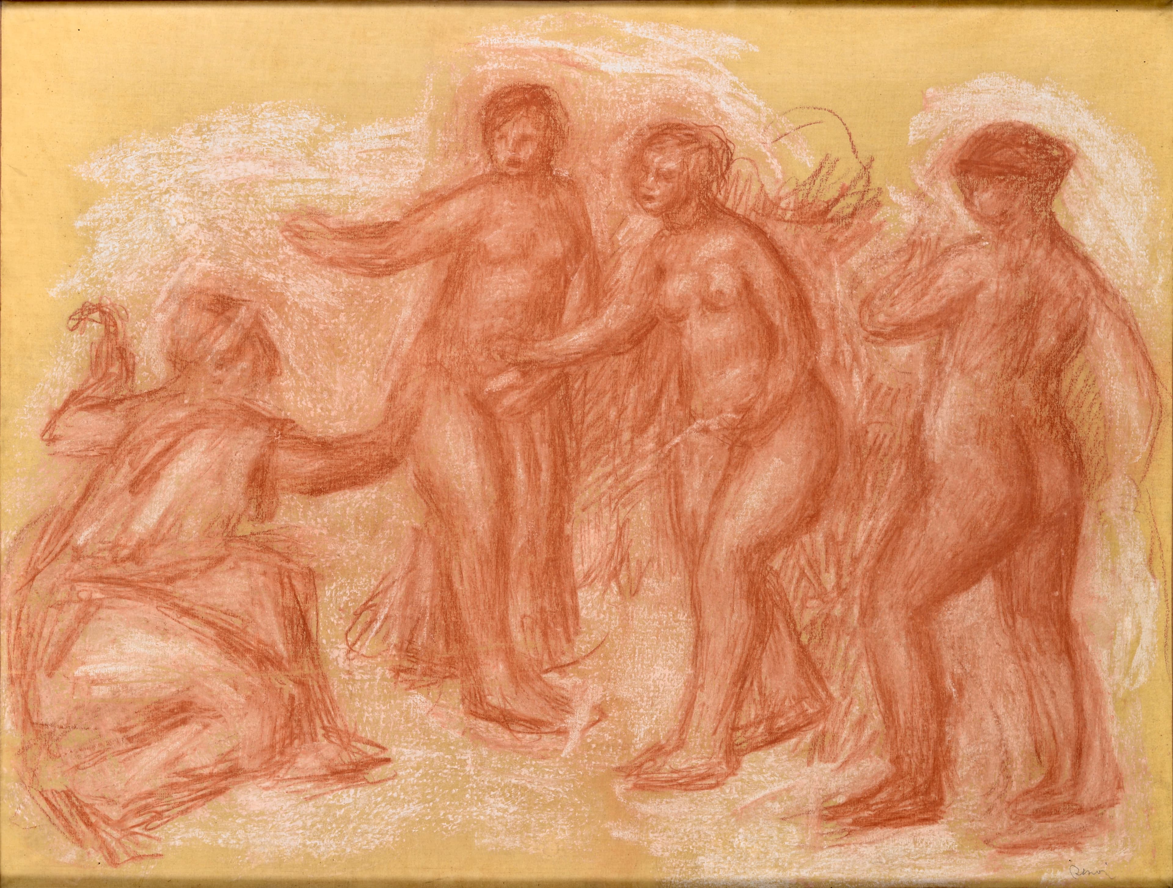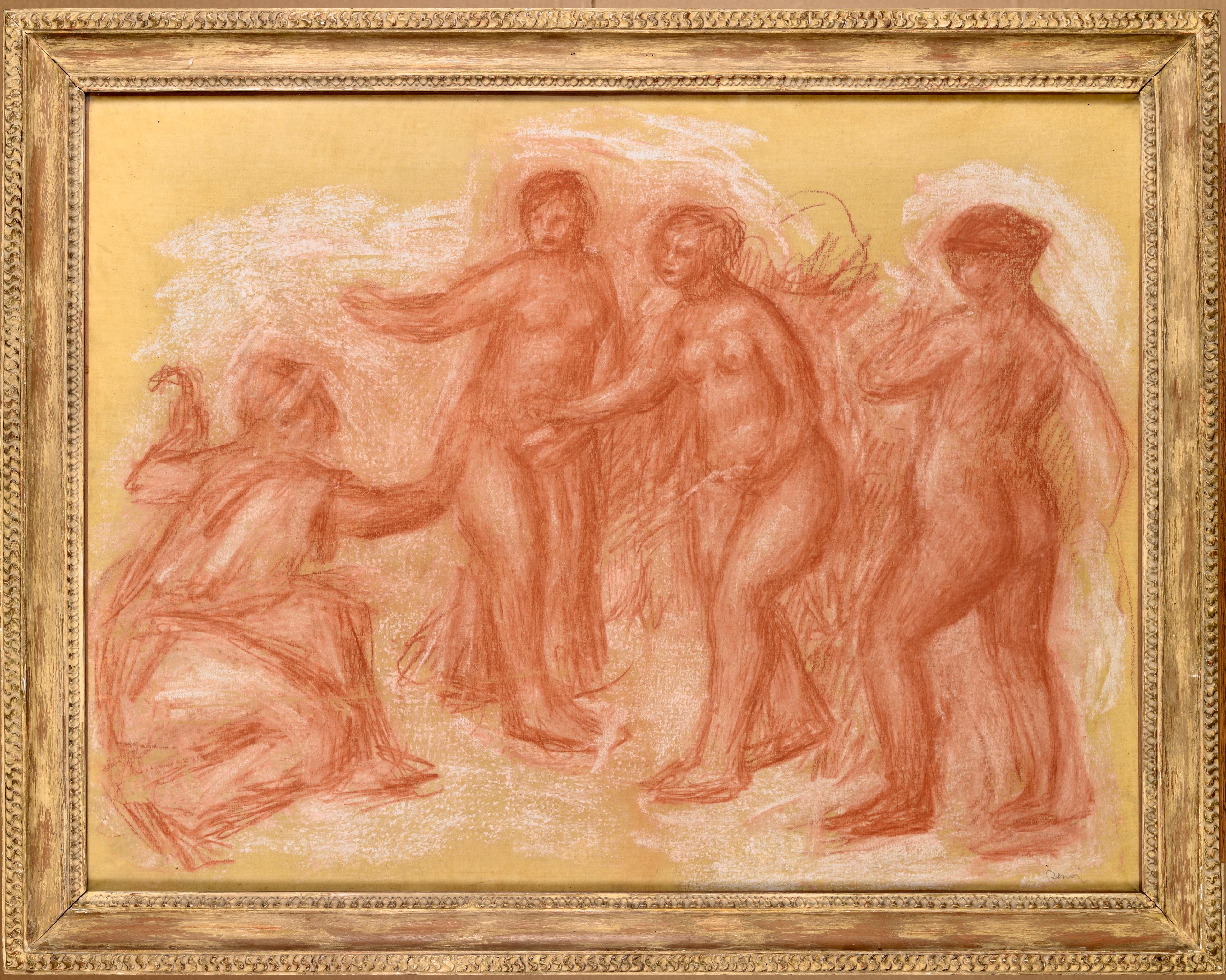 Ce grand dessin de 1908 est, parmi les multiples études de ce thème que Renoir développe bien souvent entre 1908 et 1916 environ, l'un des plus proches de l'archétype du sujet établi par Raphaël et dont la gravure de Marcantonio Raimondi (Bartsch illustré, 1978, vol. 26, p. 242, n° 245) a assuré le succès. (...) On sait par Vollard (1919, pp. 191-192) que c'est la bonne de Renoir, Gabrielle, qui a posé pour Pâris. Par un processus qui lui était familier, Renoir a assimilé le naturel pétulant de son modèle à l'impression de sérénité familière qu'il ressentait devant les œuvres de Raphaël. (Grand-Palais, 1984)