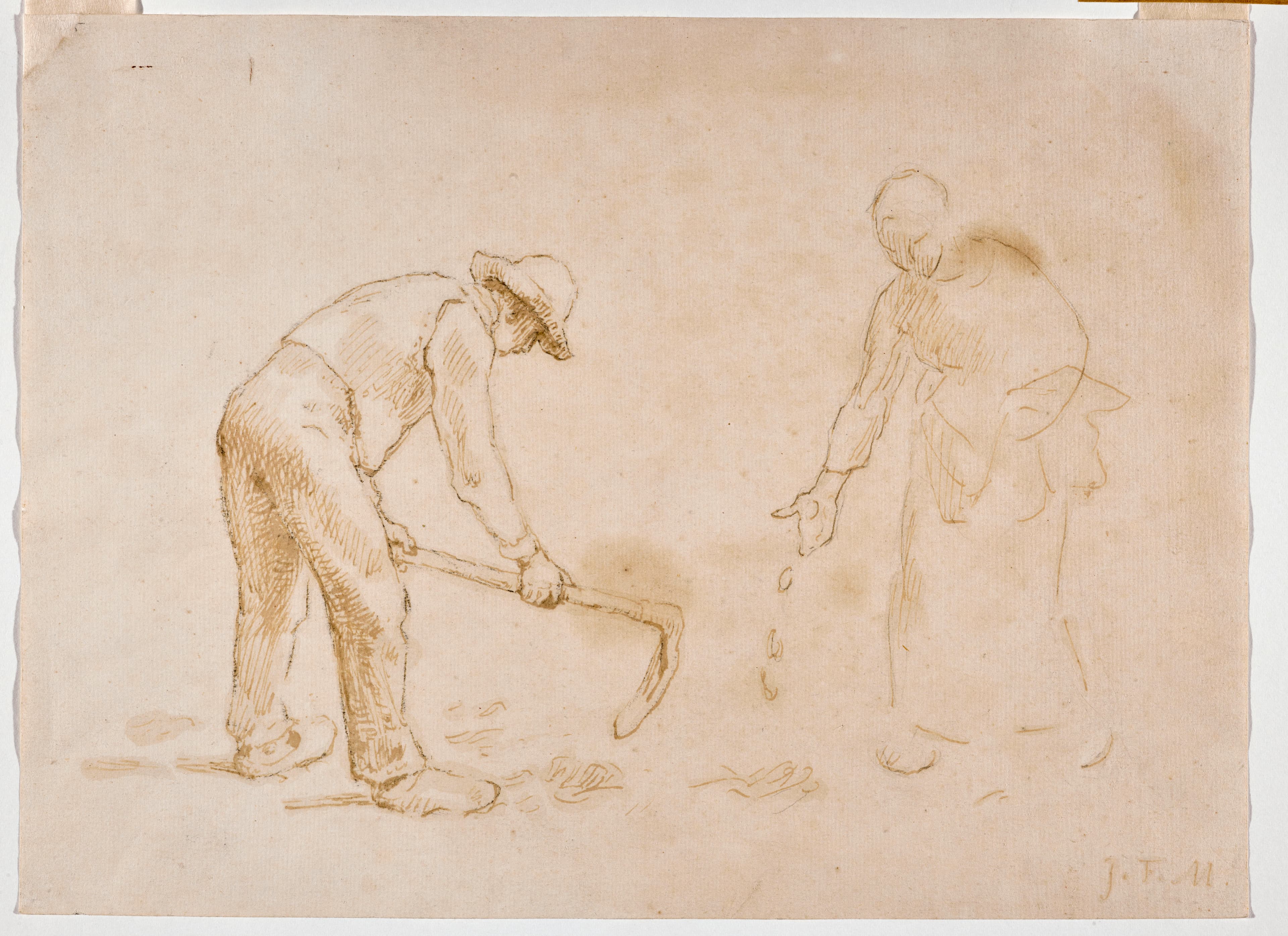 Au verso, annotations : Au crayon : "Stadl. Gal. 2455 Millet Brame 14000 frs/H.NR. 4305/I" ; au crayon rouge : "41" (numéro d'ordre de la commission de choix des œuvres de la récupération artistique).