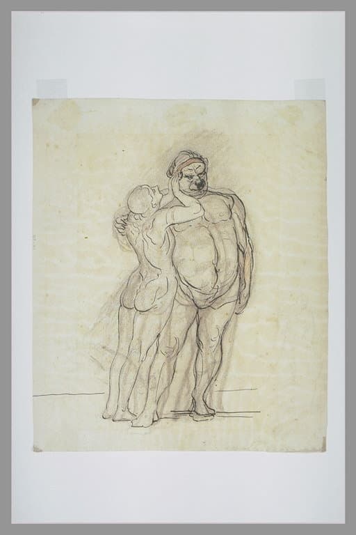 scène (couple, debout, étreinte, nu, attraction foraine)