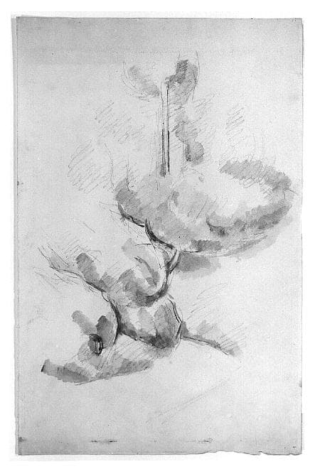 Reproduit dans l'ouvrage de L. Venturi, "Cézanne", op. cit., mais la hauteur diffère (0,37 au lieu de 0,48). Motifs analogues aux dessins dont les notices portent les numéros 930-931-932, le n° 932 "La Hutte du charbonnier" semble préciser que ces aquarelles ont été faites dans la forêt de Fontainebleau.