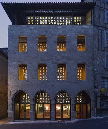 Musée Champollion la façade aux mille lettres, P. di Sciullo 2007, photo. © Luc Boegly-Agence Moatti et Rivière