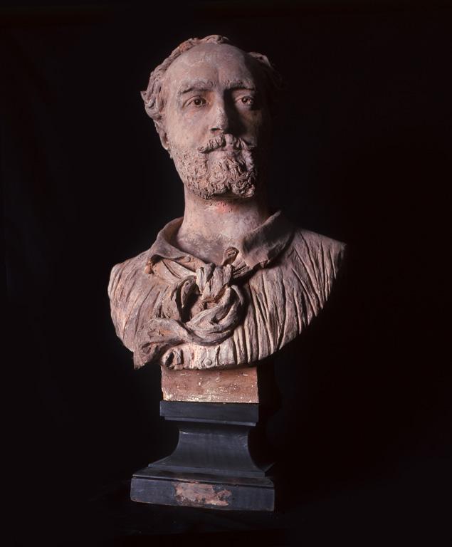Ce buste en terre cuite est l’œuvre du sculpteur français axonnais Amédée-Donatien Doublemard (1826-1900), né à Beaurain. Cet élève de Francisque-Joseph Duret, obtient le Prix de Rome en 1855, il se spécialise au retour de son séjour romain dans l'exécution des bustes de personnalités célèbres, publiques ou privées, de la société française de la 2e moitié du 19e siècle. Il réalise dans l'Aisne de nombreuses œuvres, principalement des monuments commémoratifs, celui du siège de 1871 de Saint-Quentin ou encore le Monument de Camille Desmoulins à Guise vers 1889. Bien que ce buste en terre-cuite puisse être confondu avec celui présenté au Salon de 1875 sous le numéro 3039, Portrait de M. Febre, sociétaire de la Comédie Française, la tenue vestimentaire, un déshabillé chic et bohème, faussement négligent rappelant en effet celle d'un peintre ou d'un artiste, ce portrait représente une célébrité locale, le journaliste et homme de lettres Léon Bienvenu (1835-1911). Cette œuvre a été offerte à la ville de Vervins par sa fille, Madame Marquette, en 1932. Ce buste montre la capacité de Doublemard à pouvoir retracer fidèlement tant l'état physique que psychologique de son modèle. Il montre ici un brillant émule de portraitistes comme Chapu ou encore Carpeaux, avec le choix de la terre qui se prête le plus admirablement à cette pratique, esquissant par quelques traits et un modelé précis et rapide, la personnalité de son sujet d'étude.