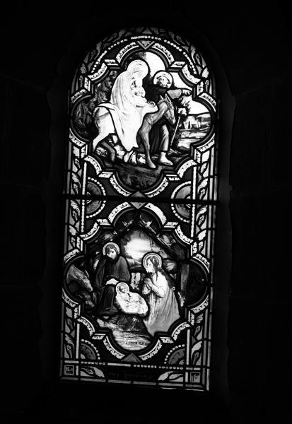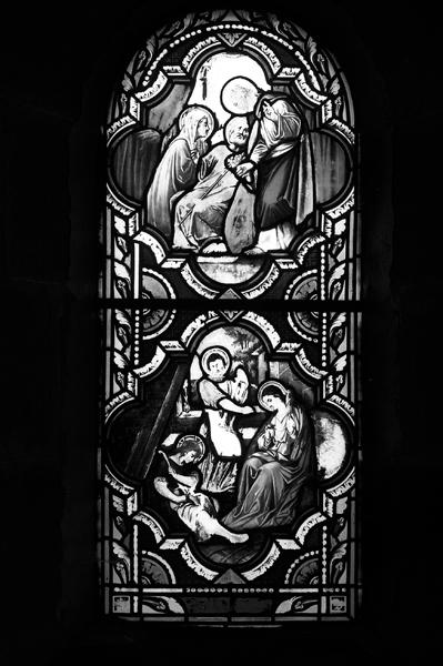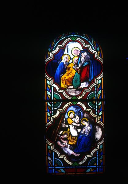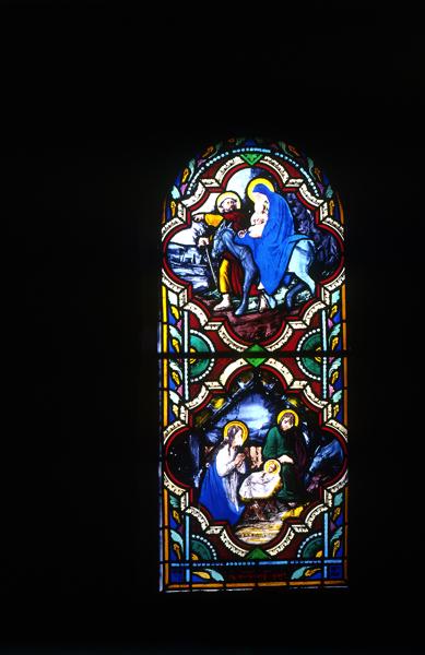 4 verrières décoratives (baies 10, 11, 12, 13) et 2 verrières historiées : Nativité, Fuite en Egypte, Atelier de Nazareth, Mort de saint Joseph (baies 5 et 7)