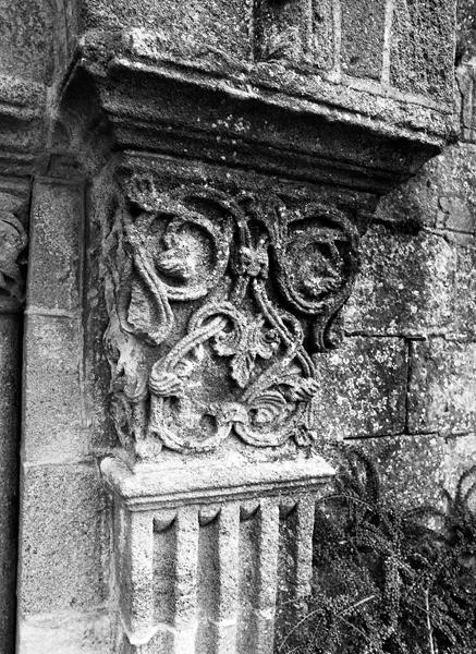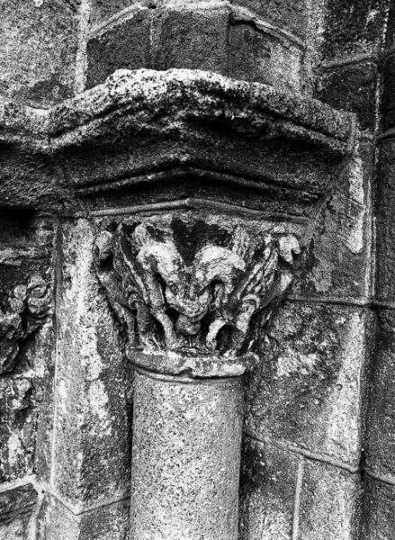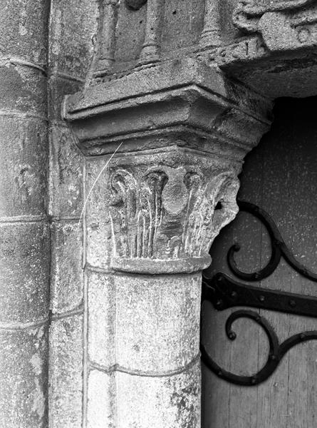 Les 6 chapiteaux couronnent les colonnes et pilastres du portail occidental de l'église.