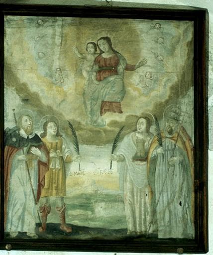 tableau : Vierge à l'Enfant, saint Jacques le Majeur, saint Mammès, sainte Barbe, saint Marcellin.