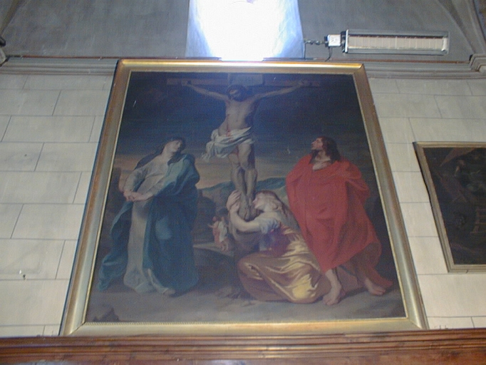 Le tableau représente le Christ en croix avec de part et d'autre la Vierge et saint Jean qui regardent tous deux le Supplicié. Au pied de la croix, sainte Marie Madeleine est figurée agenouillée, ses longs cheveux déliés, étreignant la croix de douleur.