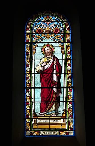 POP | Plateforme ouverte du patrimoineensemble de 4 verrières à personnages (baies 0, 2 à 6) : Saint Martial en buste, Christ du Sacré-Coeur, Saint Louis portant la couronne d'épines et Saint Antoine de Padoue et l'Enfant Jésus