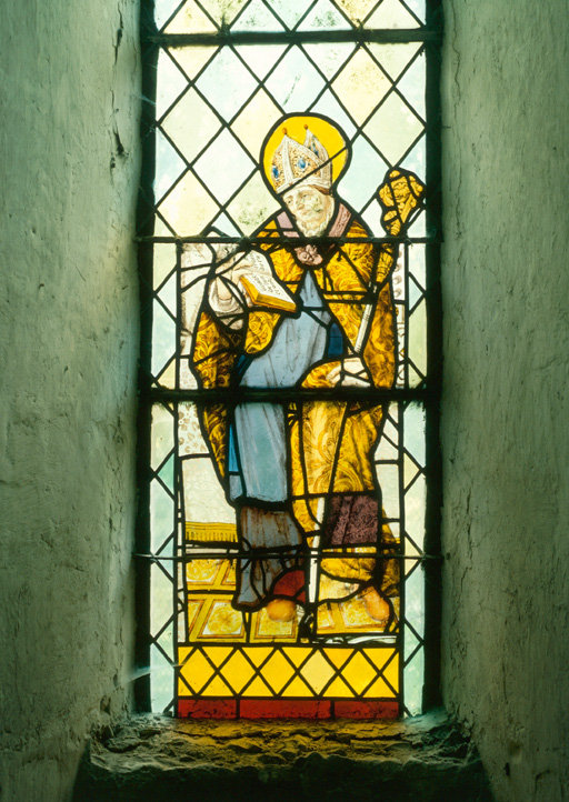 figure (évêque : saint, saint Lye : ?) ; ornementation : en encadrement, lys