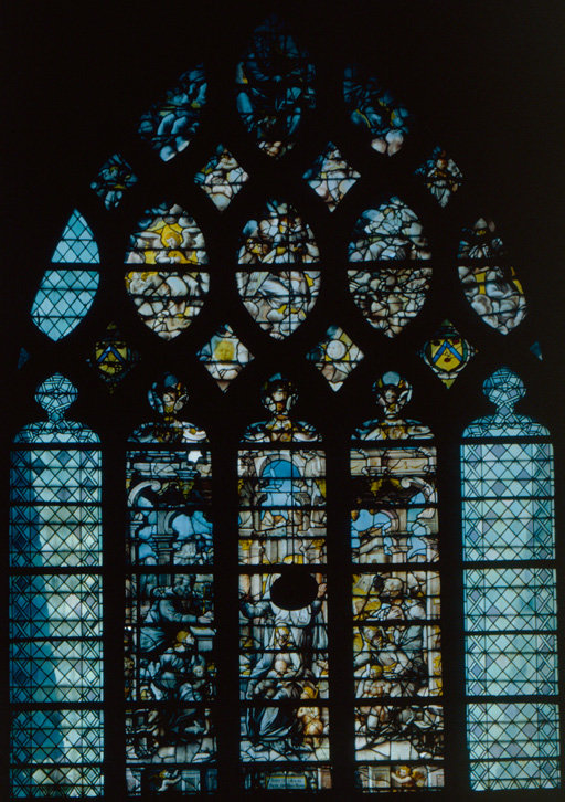 POP | Plateforme ouverte du patrimoineverrière : les trois Marie (baie 112), grisaille figurée