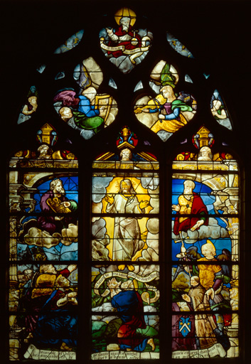 Verrière datée de 1537 très restaurée au 20e siècle (notamment le buste du Christ et les anges musiciens du tympan) ; l'inscription du soubassement, également refaite au 20e siècle, donne le nom du donateur : maître Michel, et sa fonction : chanoine de Bar-sur-Aube (10) et de Troyes (10).