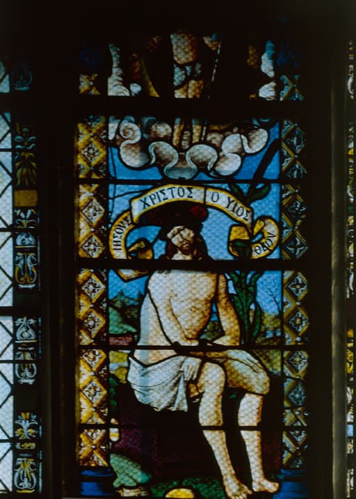 POP | Plateforme ouverte du patrimoineverrière (verrière figurée, verrière héraldique) : Christ de Pitié (baie 4)