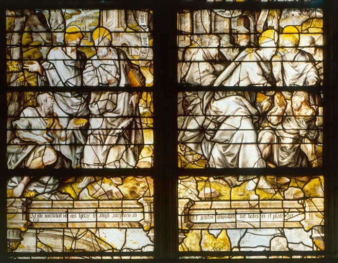 POP | Plateforme ouverte du patrimoineverrière (grisaille figurée) : vie de saint Pierre et saint Jean (baie 8)