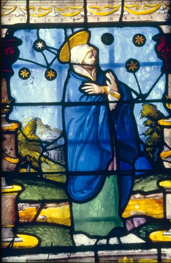 verre transparent (coloré) : montage en chef-d'oeuvre, sanguine sur verre