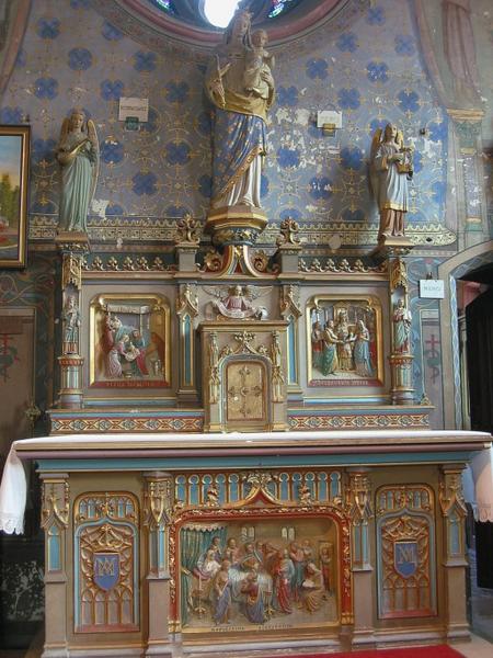 Retable bas-côté sud : Naissance de la Vierge, Mariage de la Vierge ; autel bas-côté sud : Mort de la Vierge ; retable bas-côté nord : saint Joseph charpentier, Fuite en Égypte.