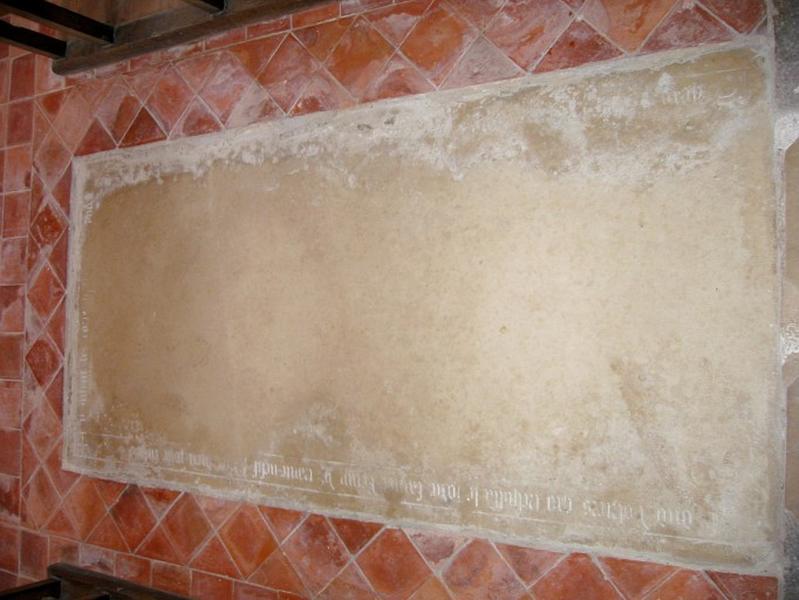 Transcription : Cy gisent les corps de [ ? ] qui trespassa le jour sainct Remy Vc trante neuf et pries Dieu pour eulx.