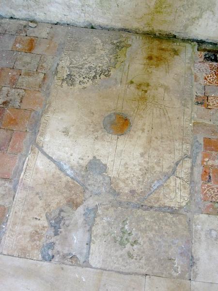 Effigie gravée à senestre. L'emplacement pour une seconde effigie, sur la moitié dextre de la dalle, semble être toujours resté vierge.