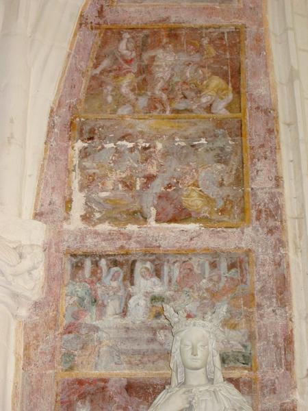 Les scènes se superposent de part et d'autre de la baie. Un ange est représenté dans chaque écoinçon.