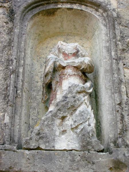 Tête et mains manquent, base lacunaire. Traces de polychromie.