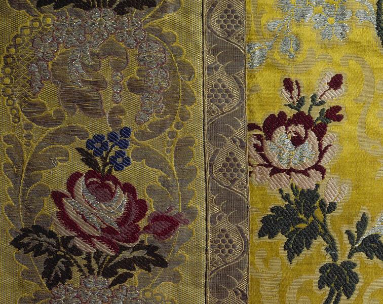 soie (trame, jaune) : tissu façonné, broché ; fil métal