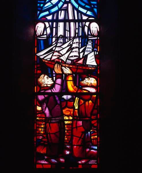 POP | Plateforme ouverte du patrimoineensemble de 3 verrières figurées : prière et offrande des marins à la Vierge