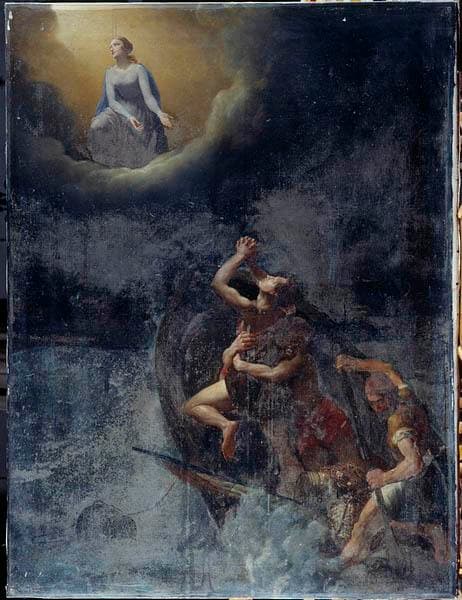 ex-voto, tableau : pêcheurs en danger de naufrage implorant la Vierge