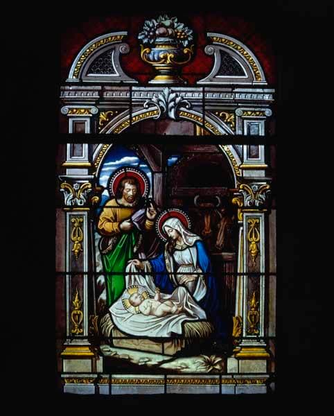 ensemble de 2 verrières figurées : Nativité ; Baptême du Christ