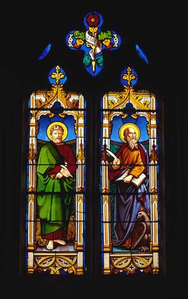 ensemble de 2 verrières à personnages : Saint Jean et saint Marc, Saint Matthieu et saint Luc