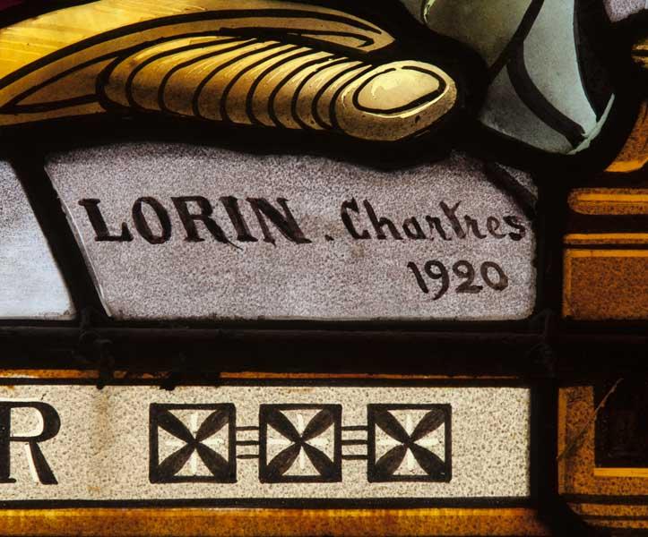 Baie 1 : SAINT MARTIN PARTAGEANT SON MANTEAU ; CH. LORIN / CHARTRES 1919 ; NOTRE-DAME DE LOURDES. Baie 2 : SAINT GEORGES TERRASSANT LE DRAGON ; NOTRE-DAME DE LA DELIVRANDE; Baie 3 : SAINT VICTOR ; CH. LORIN 1920 ; NOTRE-DAME DE LA GARDE. Baie 4 : SAINT MAURICE ; NOTRE-DAME DU BOCAGE.