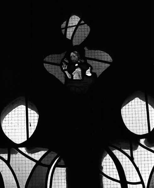 2 verrières (mouchettes) : Christ bénissant, Dieu le Père (baies 5 et 6)