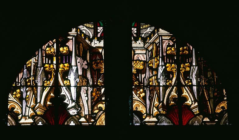 verre transparent : grisaille sur verre ; plomb (réseau)