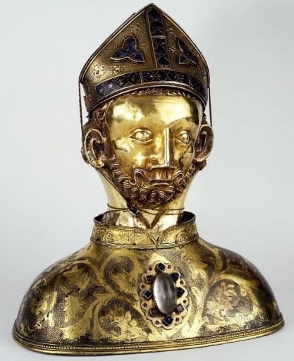 copie du buste-reliquaire de saint Martin, avec éléments émaillés originaux