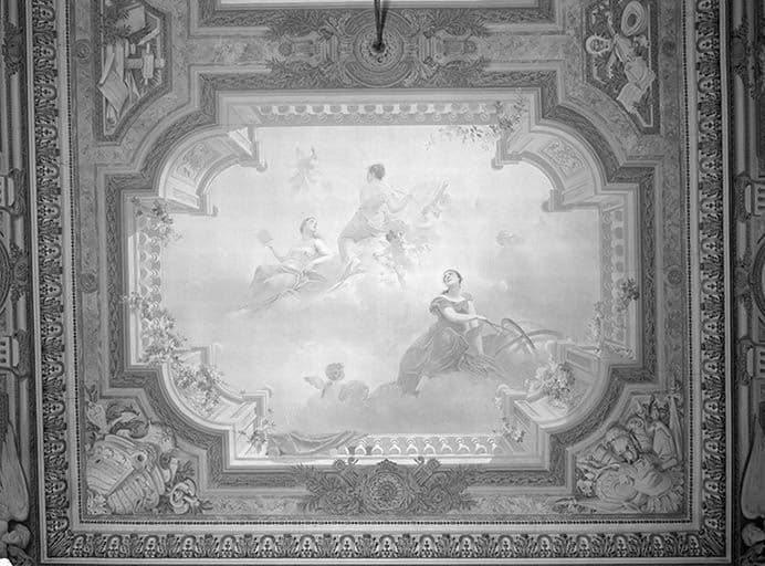 peintures monumentales : Apollon couronnant les arts scéniques ; allégories de la Sculpture, de la Musique et de la Peinture ; Allégories de l'Astronomie, de la Poésie et de la Littérature