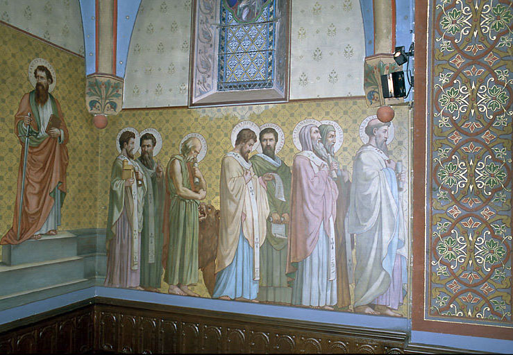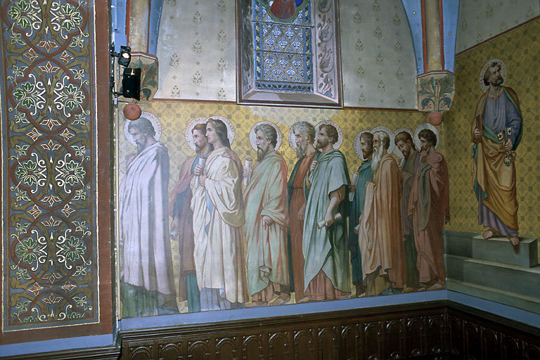 POP | Plateforme ouverte du patrimoineensemble du décor du choeur (peintures monumentales) : Les Evangélistes, saint Pierre, saint Paul, les Apôtres, les Pères de l'Eglise