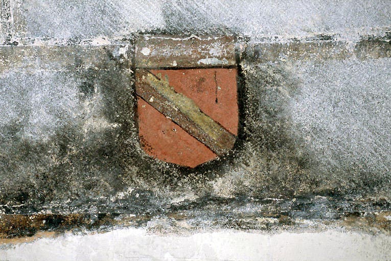enduit (support) : peinture à la chaux (?), peinture à l'huile (?)