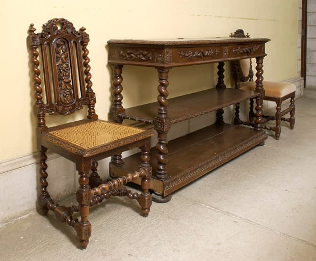 POP | Plateforme ouverte du patrimoinebuffet, 2 tables de décharge ou dessertes et 3 chaises de style Henri II
