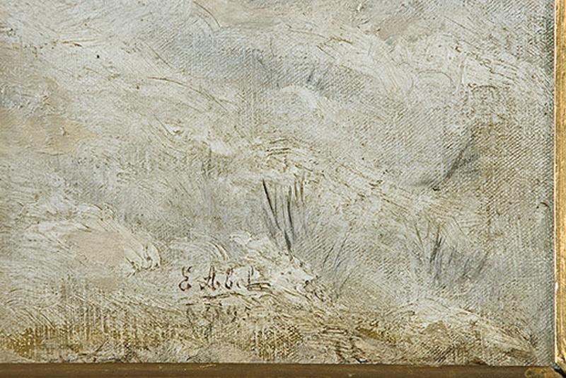 Oeuvre du peintre E. Abel datée 1895, copie réduite d'une composition d'Aimé Perret présentée au Salon des Artistes français de Paris en 1879 et conservée au musée d'Orsay.